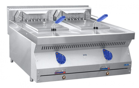 Электрическая фритюрница работает от сети с напряжением 380 В и обладает мощностью 15 кВт, что обеспечивает быстрое разогревание масла до температуры 190 °C всего за 10 минут. Температурный режим можно регулировать в диапазоне от +20 до +190 °C, что позволяет адаптировать процесс жарки под различные рецепты.